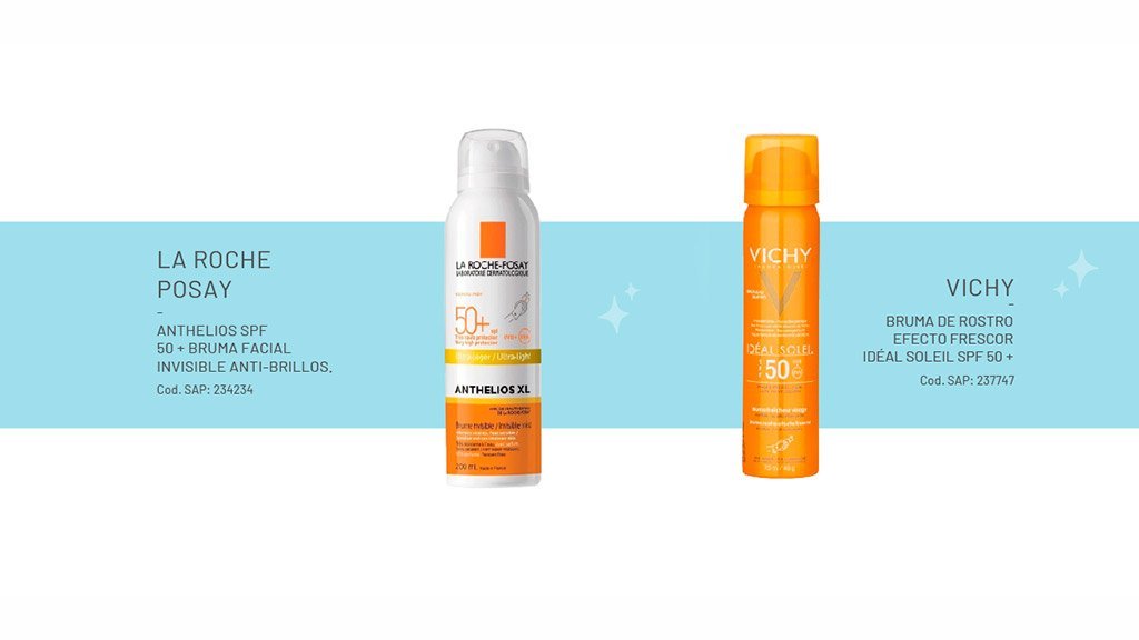Para las amantes del make up, es importante recomendarles las brumas faciales, porque permiten rociar el rostro incluso encima del maquillaje. Se utilizan directamente sobre el rostro, con los ojos y boca cerrados.