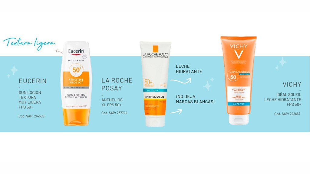 Tenemos una inmensa variedad texturas adaptadas a cada gusto y necesidad, el desafío es recomendar el protector perfecto para cada consumidor. ¿Cómo lograrlo? Identificando el tipo de piel y el uso que le dará cada cliente.
