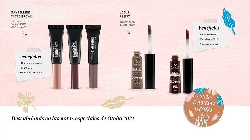 Es importante recomendar productos de aplicación ligera, ya que un mal uso del maquillaje podría generar el efecto contrario y reducir la cantidad en la zona. Las tintas para rellenar tus cejas y el gel de cejas semi permanente, son solo algunos de nuestros productos preferidos.