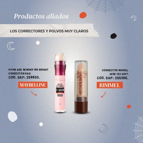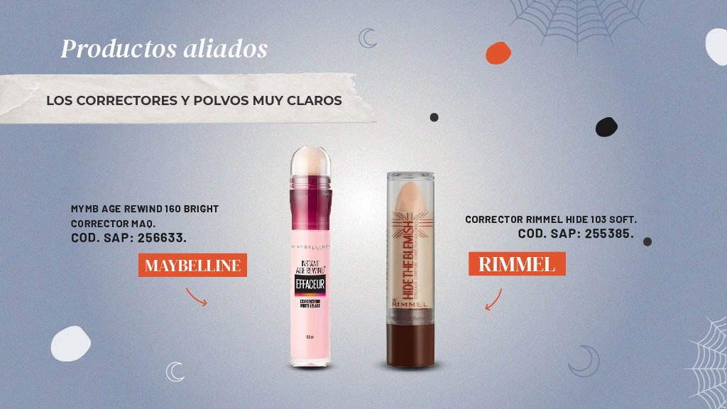 • Los correctores y polvos muy claros: pueden dar un aspecto fantasmagórico y aterrador; usalos en todo el rostro, incluso sobre labios y cejas.