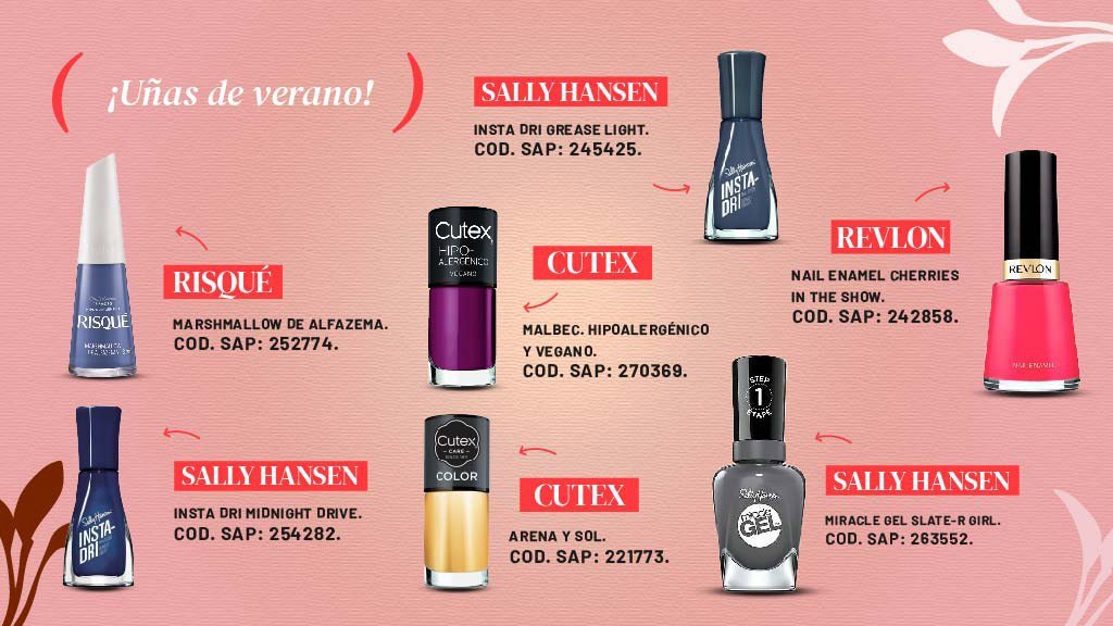 Ahora sí llegó el momento de ponerle color a las manos, como un accesorio más de moda. Para un look increíble, lo ideal es usar tonalidades que se complementen con el tono de labial, de sombras o la cartera. Los colores más atrevidos y vibrantes de la temporada son fucsia, violeta, verde, azul, naranja y amarillo. Tampoco faltan los grises, rosas y los pasteles.
