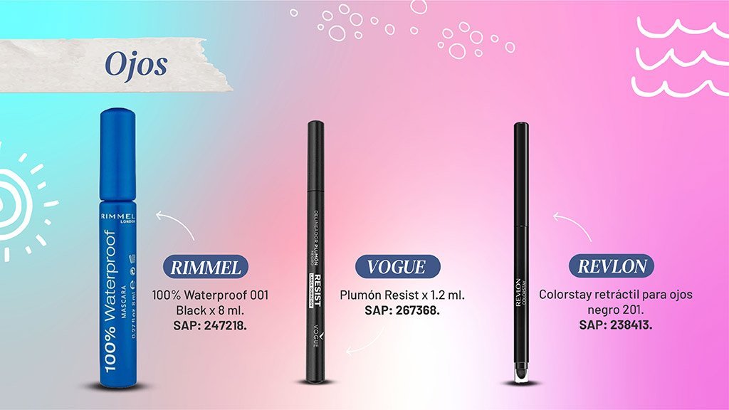 En esta temporada de altas temperaturas, humedad y exposición prolongada al agua de la piscina y el mar, al maquillaje se le exige ser mucho más duradero y resistente. A ninguna clienta le da gracia que su delineado, el maquillaje de sus cejas o su máscara de pestañas terminen en sus ojeras. Ya sea para un evento especial como una fiesta, o simplemente, un día normal en el cual el maquillaje debe durar todo el día, las opciones a prueba de agua o waterproof son las más indicadas a la hora de recomendar.