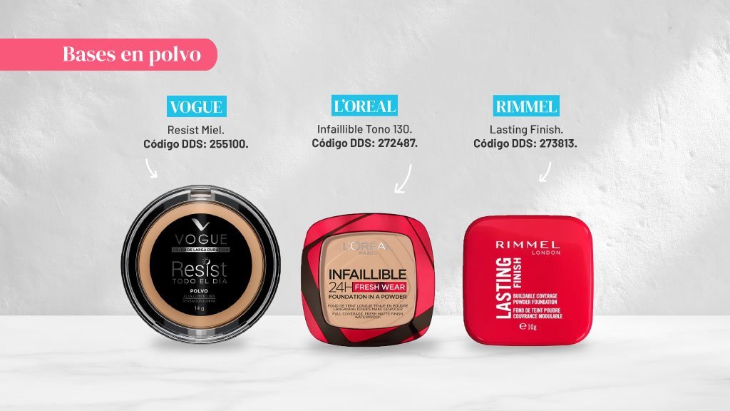 Al igual que el volátil, este polvo fija, matifica y no tiene color, pero al estar compactado su aplicación es más fácil.