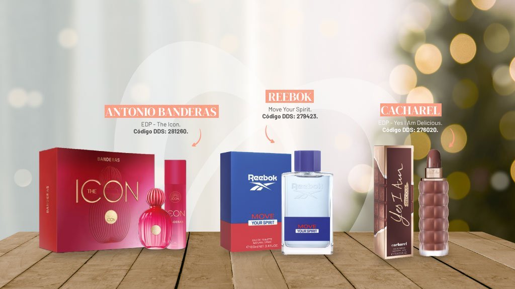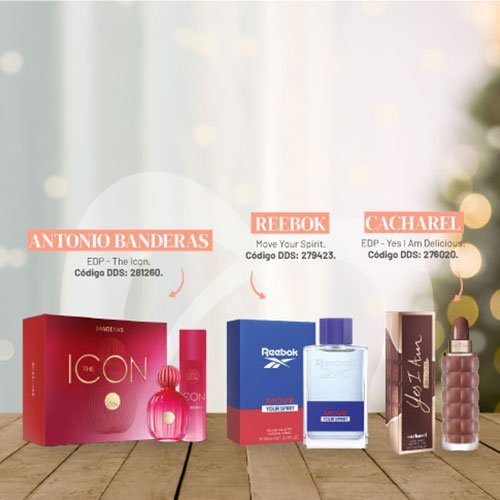 REEBOK MOVE YOUR SPIRIT (279423) es un perfume super activo para hombres que están en constante actividad física. También el CACHAREL YES I AM DELICIOUS EDP (276020) que es una cautivante y envolvente fragancia sensual y dulce para ellas o DIESEL SOUND OF THE BRAVE (276021) que es prácticamente una declaración de hombre que lleva adelante una familia. Y otra opción muy diferente y festiva para ellas es PEPE JEANS FOR HER (276045) que tiene un frasco en forma de copa y un perfume que deja una estela inolvidable y original.