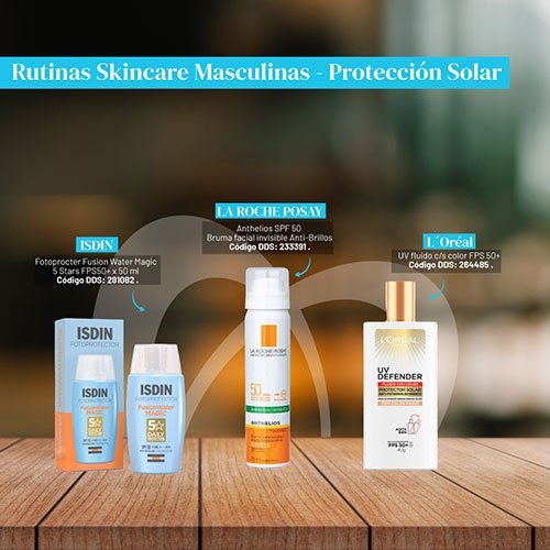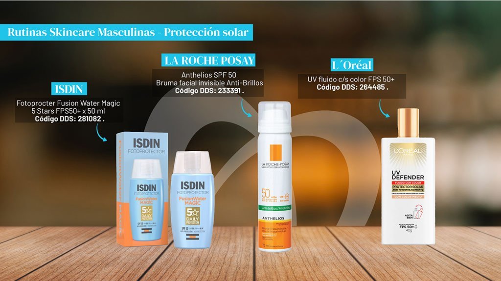 Si hablamos de rutinas, no podemos dejar de lado la recomendación de finalizar con el uso del protector solar. Y acá también es fundamental identificar la textura del producto, ya que los hombres son bastantes reacios a utilizar protector solar.