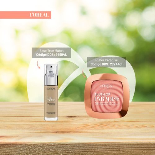 El rubor L'Oréal Paradise (Cód. DDS 272448) es suave y aterciopelado, ofreciendo un color natural con un acabado luminoso. Su fórmula ligera se difumina fácilmente, dejando un aspecto fresco y saludable en las mejillas.