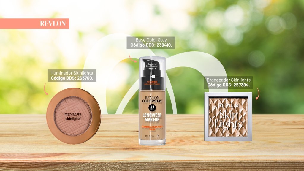Revlon Skinlights (Cód. DDS 263760), este iluminador brinda un brillo radiante y natural a la piel, ideal para lograr un acabado luminoso.